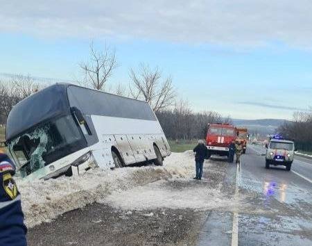 Автобус с 22 пассажирами слетел в кювет под Новороссийском