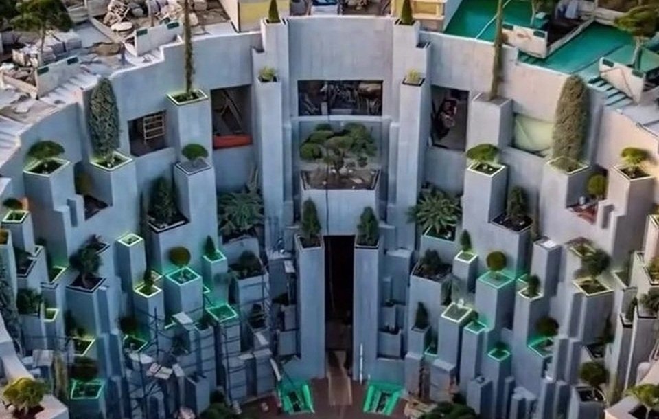 Концепция объекта предполагает сооружение масштабного бетонного цилиндра, уходящего вглубь земли. Внутри этого пространства будет организовано несколько уровней, где деревья и зеленые насаждения разместят непосредственно на стенах конструкции и опорных колоннах. Такое инженерно-ландшафтное решение позволит создать эффект погружения в природную среду внутри урбанистического объекта.