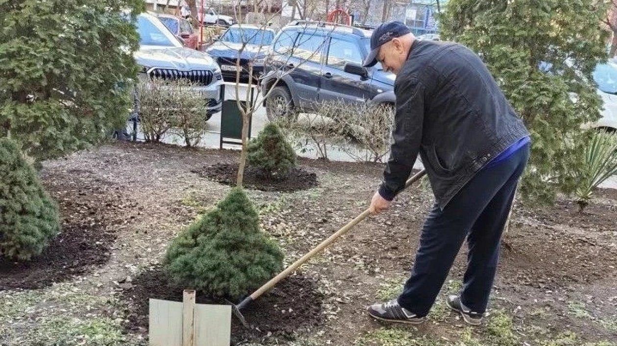 Особое внимание уделили благоустройству палисадников: горожане убирали засохшие ветки и сорняки, вскапывали землю после зимы, высаживали цветы. Жильцы дома на улице Ставропольской, 172 приобрели и посадили во дворе хвойные деревья.