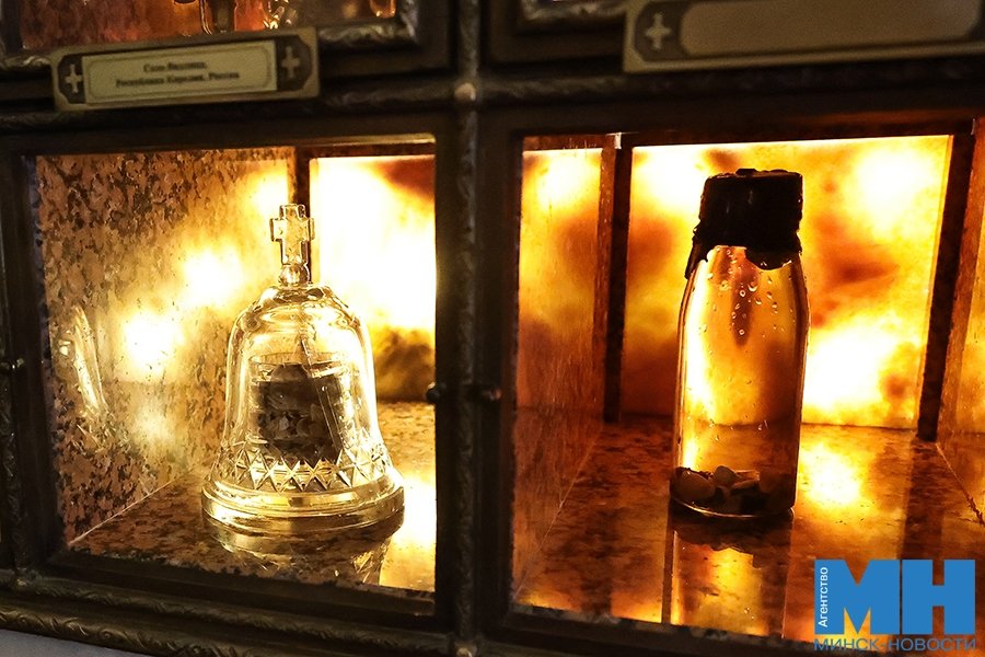 В третьей — вода с места крушения советского круизного лайнера "Адмирал Нахимов", на котором погибли три уроженца Беларуси. Катастрофа произошла 31 августа 1986 года близ Новороссийска, жертвами стали 423 человека.