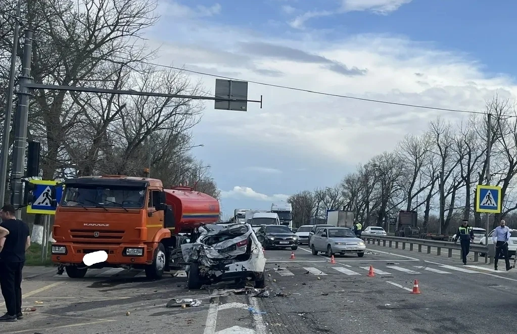 В Армавире "КамАЗ" столкнулся с тремя легковыми автомобилями на трассе "Кавказ"